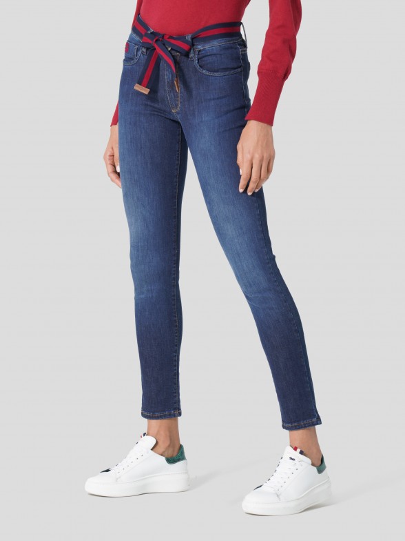 Denim jeans with belt