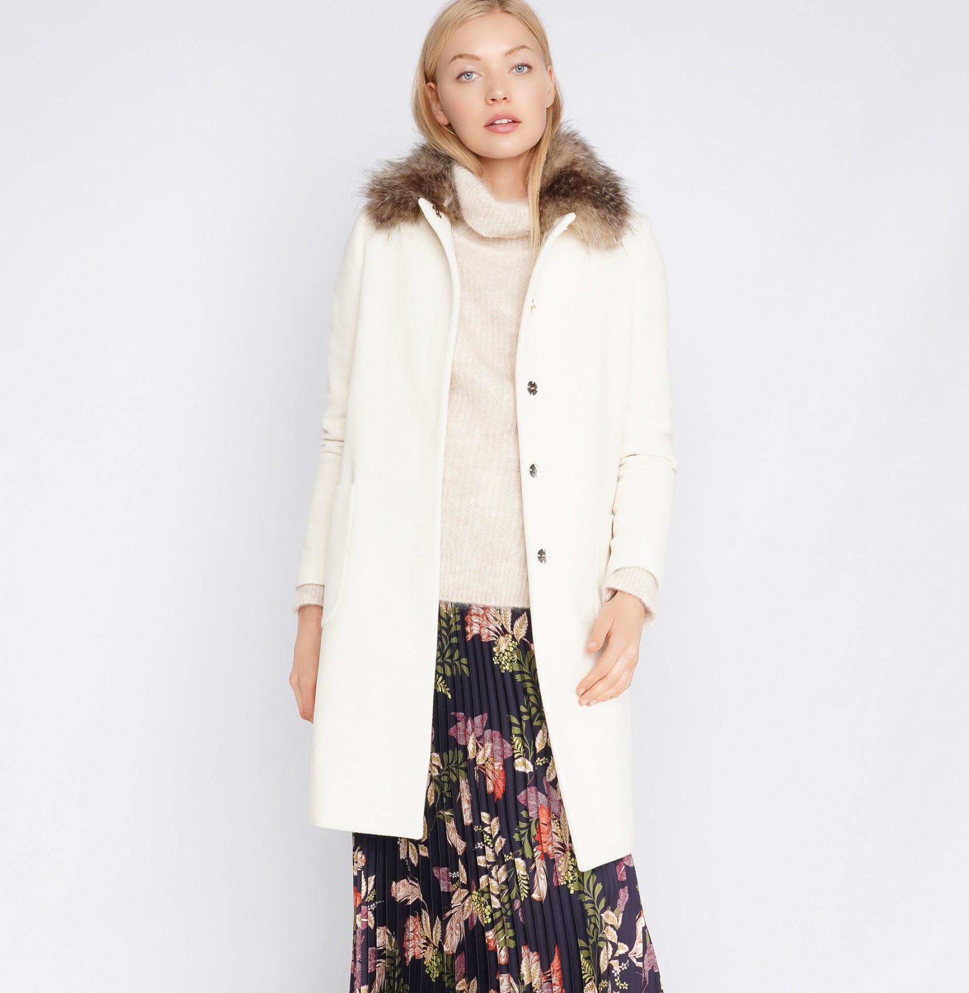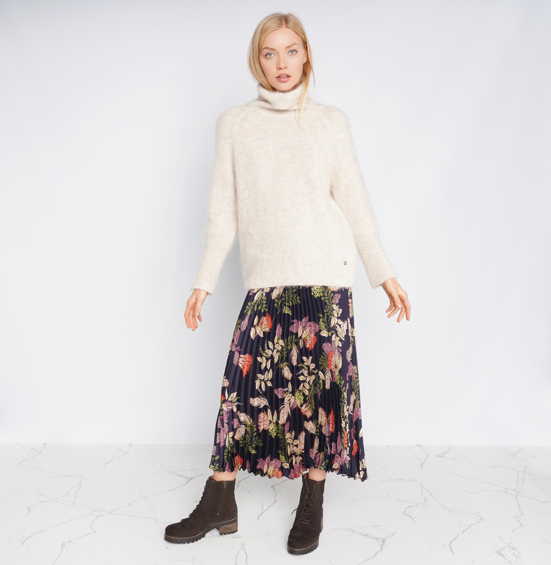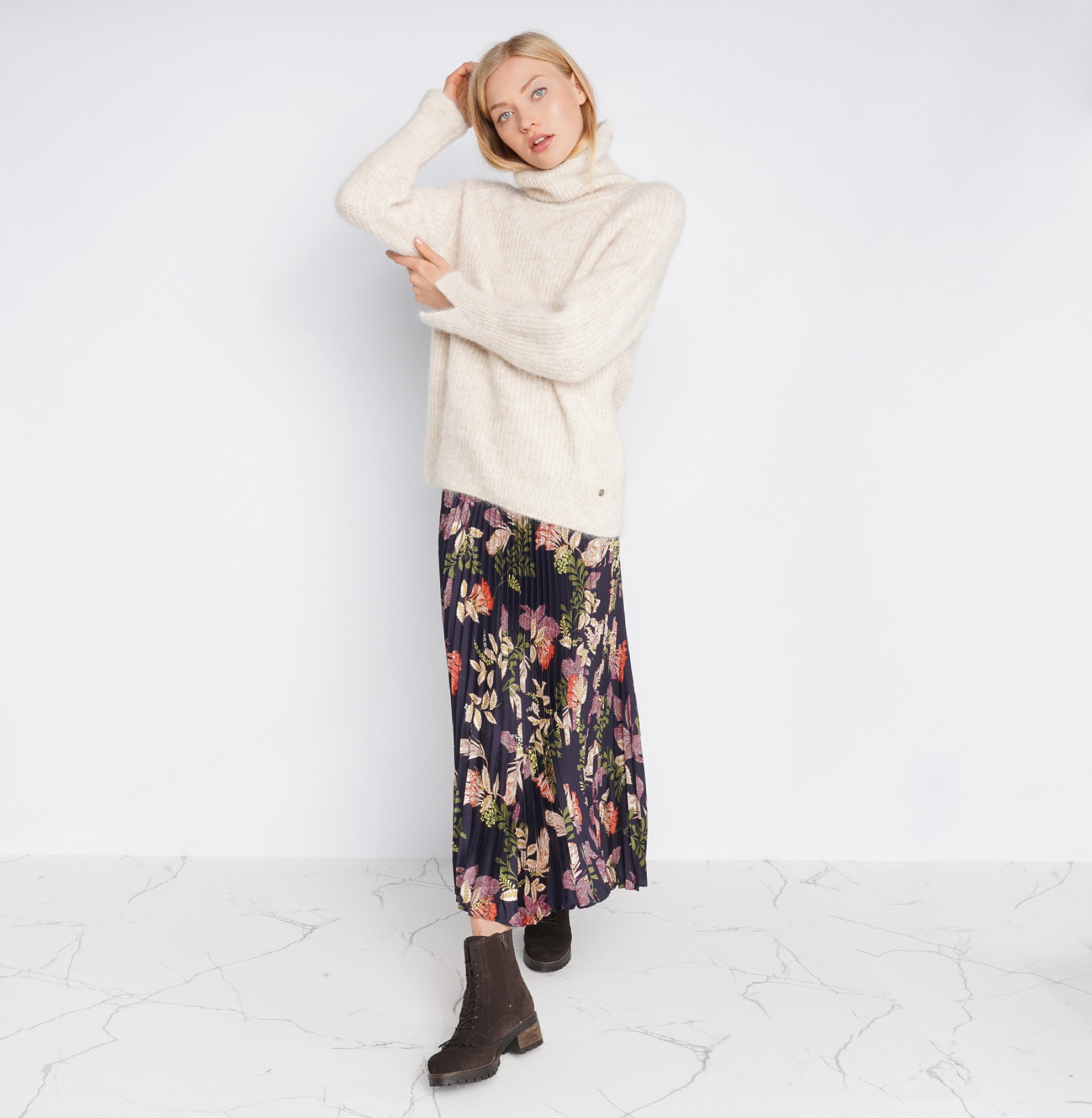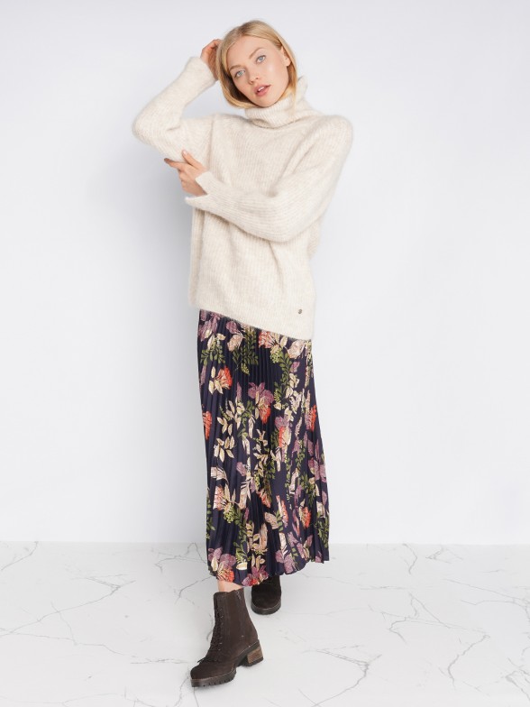 Saia plissada com estampado floral